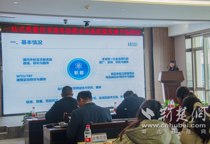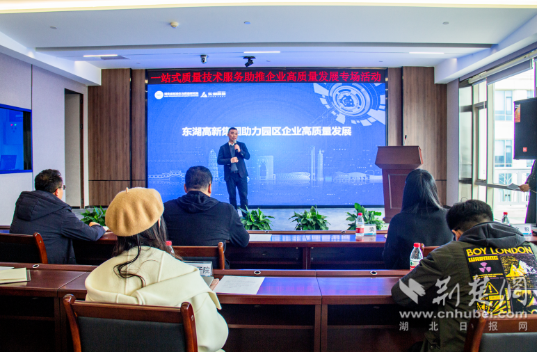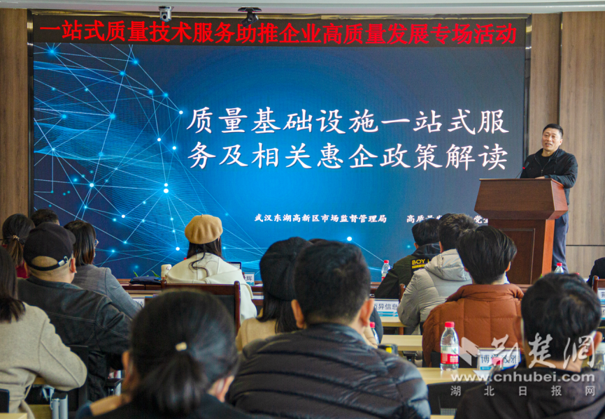 荊楚網(wǎng)(湖北日報(bào)網(wǎng))訊(記者劉陽 通訊員胡甜)2月28日,由武漢市東湖高新區(qū)市場監(jiān)管局指導(dǎo),湖北省標(biāo)準(zhǔn)化與質(zhì)量研究院、武漢東湖高新集團(tuán)股份有限公司聯(lián)合主辦,湖北光谷標(biāo)準(zhǔn)創(chuàng)新科技有限公司、武漢科訊智園技術(shù)服務(wù)有限公司等單位承辦的“一站式質(zhì)量技術(shù)服務(wù),助推企業(yè)高質(zhì)量發(fā)展專場活動(dòng)”在武漢軟件新城舉辦。來自東湖高新區(qū)的40余家企業(yè)的50名代表參加了此次活動(dòng)。