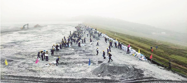 湖北大峪口磷石膏庫(kù)舉行綜合演練,現(xiàn)場(chǎng)模擬山體邊坡坍塌處置。