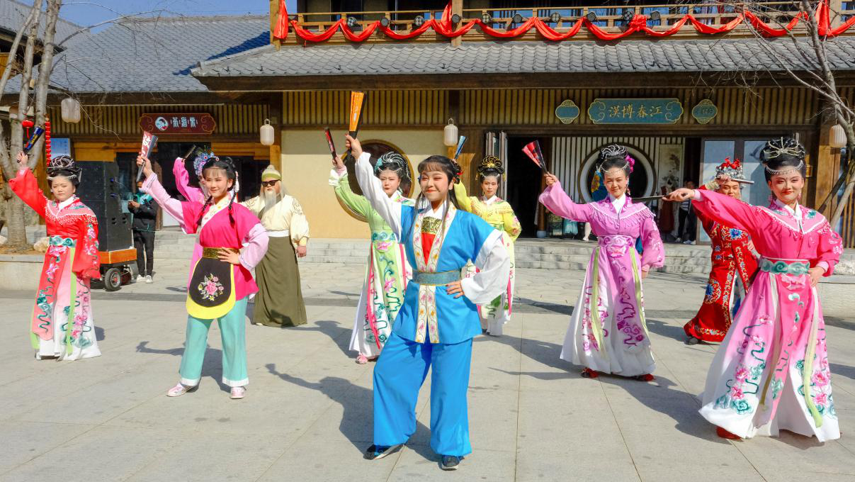 采風(fēng)團(tuán)一行先后參觀東山問(wèn)梅村文旅商街、主題度假客棧、問(wèn)梅山莊宴會(huì)廳、稻田親子樂(lè)園以及鳳源里別墅等特色項(xiàng)目,在問(wèn)梅村唐風(fēng)宋韻、移步換景的國(guó)風(fēng)景致里欣賞了經(jīng)典黃梅戲、國(guó)風(fēng)舞蹈等演藝節(jié)目,感受了一場(chǎng)優(yōu)雅的非遺文化體驗(yàn)之旅。
