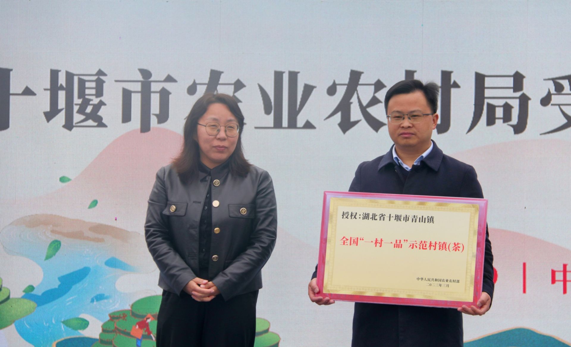 活動(dòng)現(xiàn)場(chǎng)為青山鎮(zhèn)頒發(fā)全國(guó)“一村一品”示范村鎮(zhèn)獎(jiǎng)牌(央廣網(wǎng)發(fā) 李磊 攝)