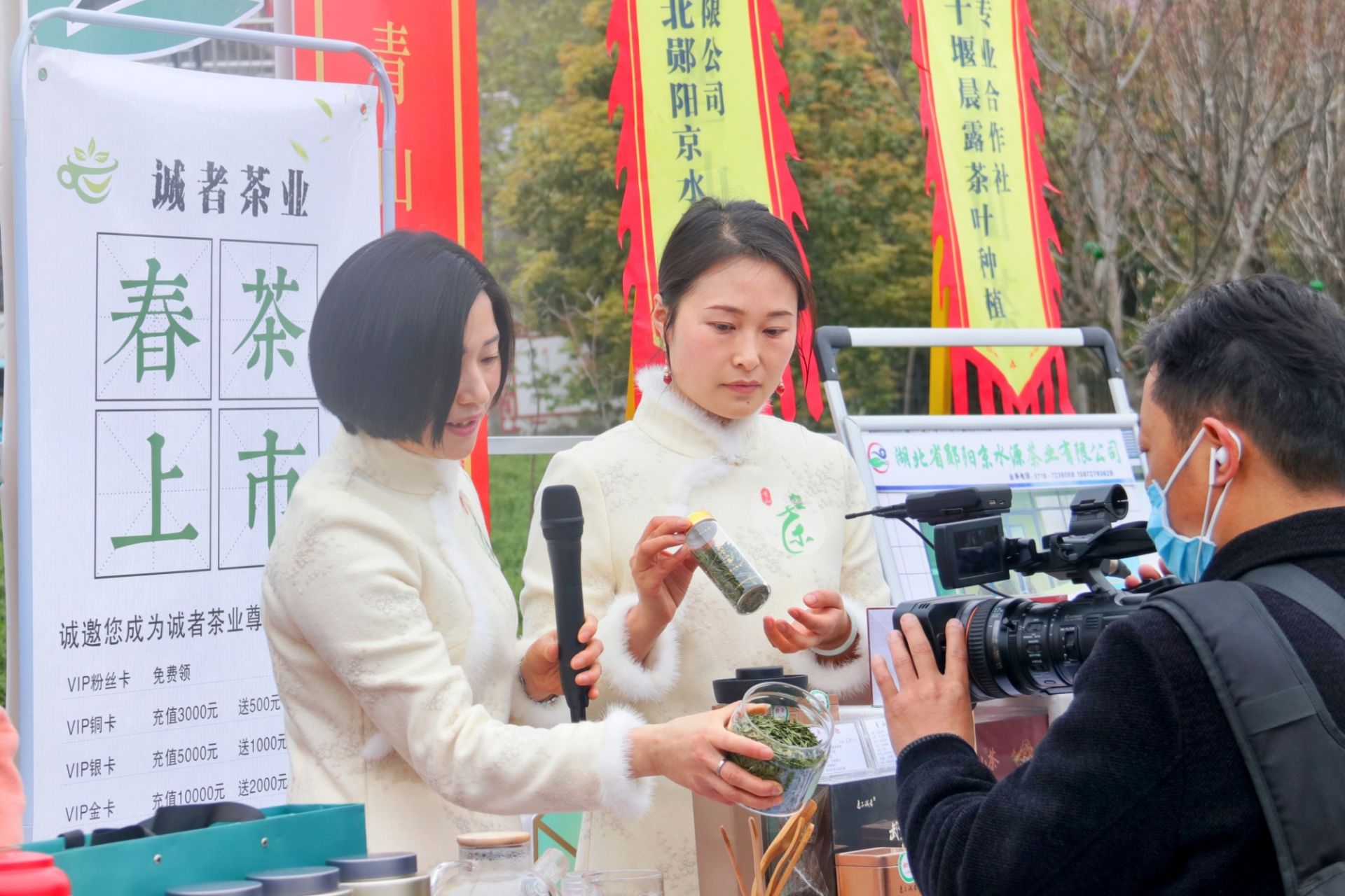 茶企在鄖陽(yáng)區(qū)茶文化展現(xiàn)場(chǎng)推介春茶(央廣網(wǎng)發(fā) 李磊 攝)