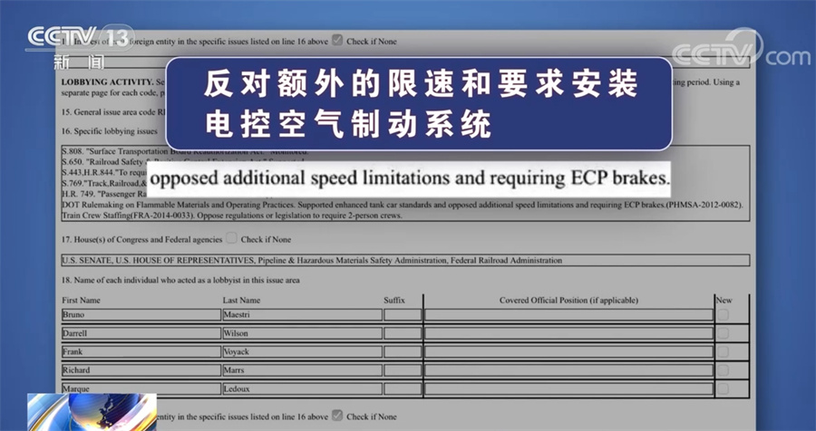 俄亥俄州脫軌“毒火車(chē)”所屬的諾??四戏借F路公司2015年的游說(shuō)文件顯示,該公司曾游說(shuō)國(guó)會(huì)和負(fù)責(zé)制定交通部規(guī)則的行政機(jī)構(gòu),“反對(duì)額外的限速和要求安裝電控空氣制動(dòng)系統(tǒng)”。美國(guó)跟蹤政治資金用途的非黨派組織“公開(kāi)秘密”的數(shù)據(jù)顯示,2015年至2022年間,美國(guó)鐵路協(xié)會(huì)共斥資3940萬(wàn)美元用于游說(shuō)聯(lián)邦政府。這其中,諾??四戏借F路和聯(lián)合太平洋鐵路等公司提供了數(shù)百萬(wàn)美元的政治獻(xiàn)金。