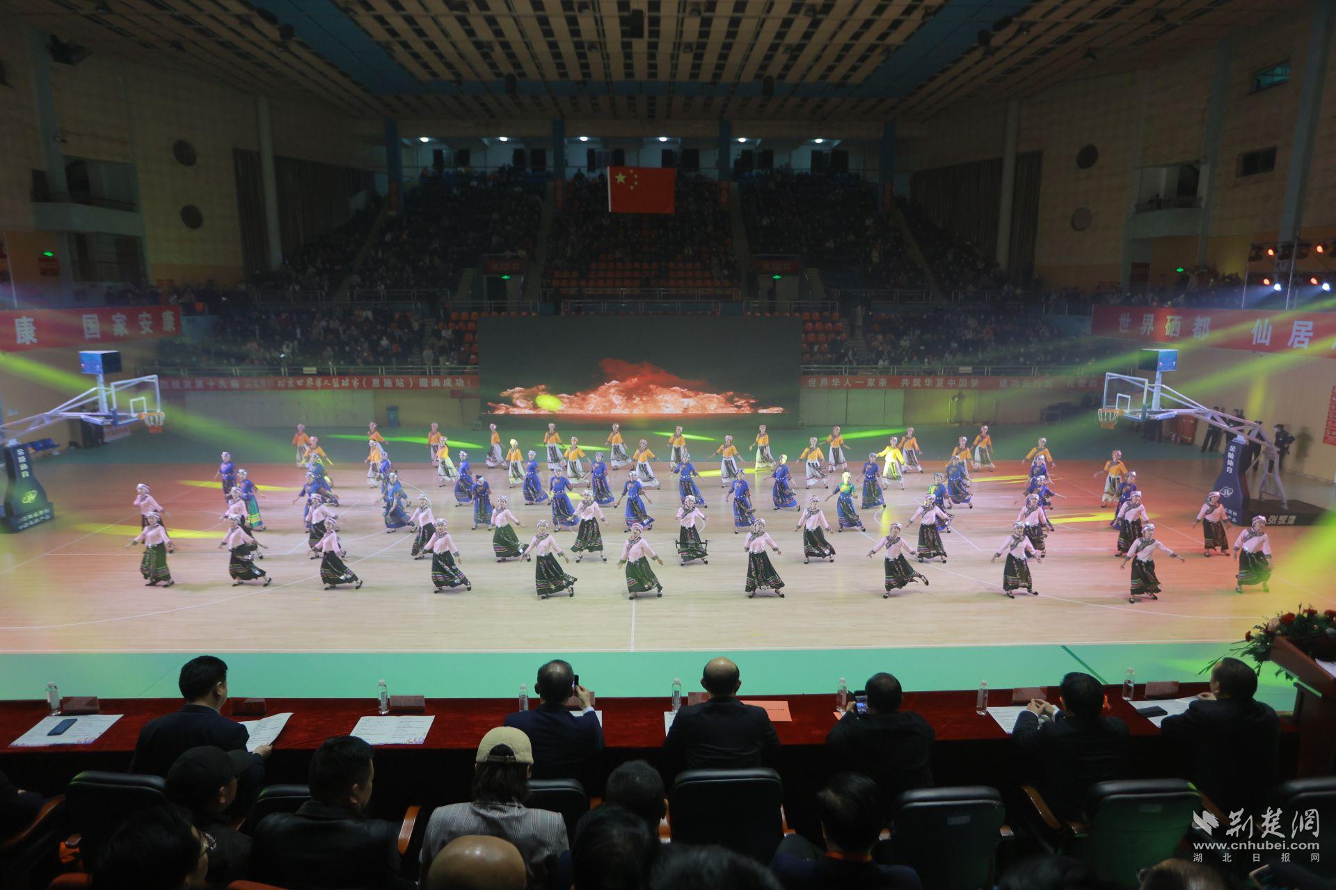 恩施市在開(kāi)幕式上組織了精彩的文體節(jié)目,激情澎湃的《舞動(dòng)青春》、民族舞蹈《八方來(lái)賀》以及炫酷的花式籃球表演和歡快的土家擺手舞,將開(kāi)幕式推向了高潮。演出結(jié)束后,由華人籃球全明星聯(lián)隊(duì)與恩施籃球聯(lián)隊(duì)打響了本次賽事的“首秀”之戰(zhàn)。