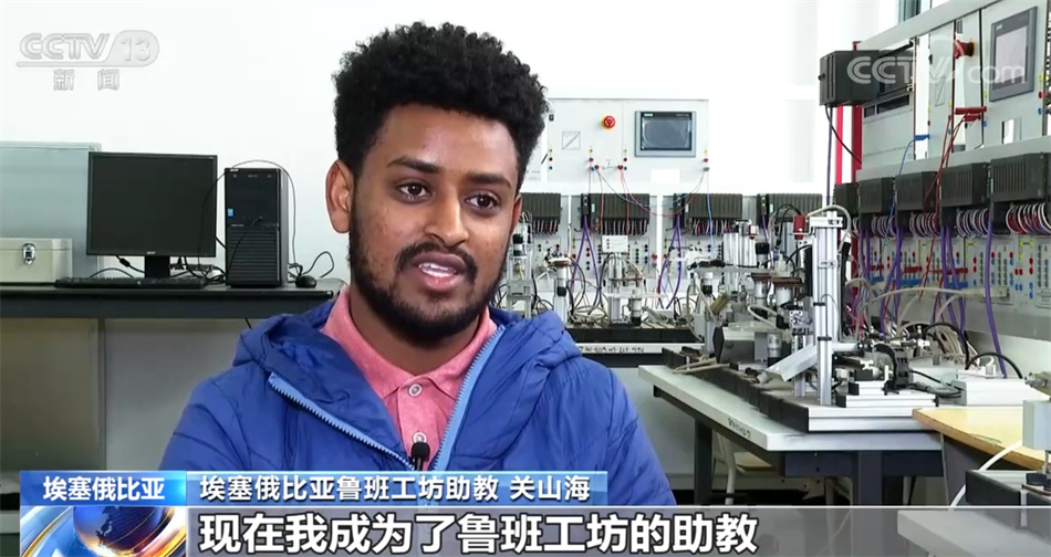埃塞俄比亞魯班工坊助教 關(guān)山海:我真的很興奮,因為現(xiàn)在我真的可以在這里工作了,不是作為學(xué)生,而是老師。我可以去幫助學(xué)生,用當(dāng)?shù)卣Z言指導(dǎo)他們,有些學(xué)生不擅長英語或其他語言。