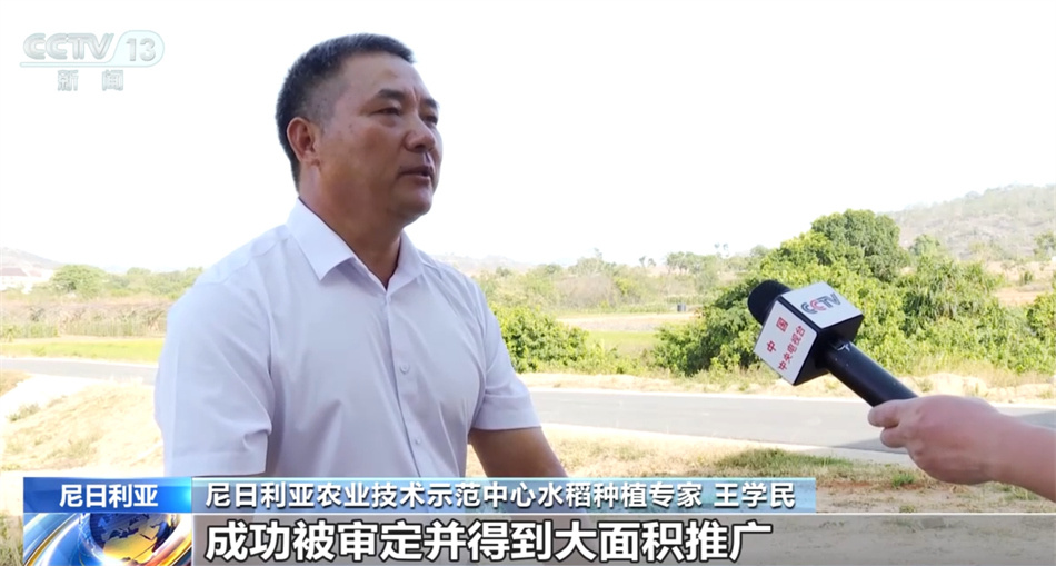 尼日利亞農(nóng)業(yè)技術(shù)示范中心水稻種植專家 王學(xué)民:終于在2017年,我們的新品種成功被審定并得到大面積推廣,它的產(chǎn)量比當(dāng)?shù)氐闹魍破贩N要增產(chǎn)30%左右,得到農(nóng)民的喜愛。我們的種子還沒有成熟之前,就會(huì)被當(dāng)?shù)馗浇霓r(nóng)民預(yù)訂過去當(dāng)種子用了。