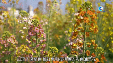 一片彩色的油菜花正開得艷