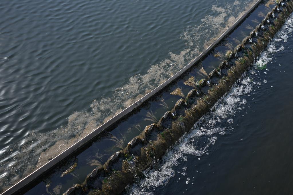 這是沈陽(yáng)南部污水處理廠二沉池,污水在二沉池通過(guò)物理的沉淀作用使泥水得到分離(3月17日攝)。新華社記者潘昱龍攝
