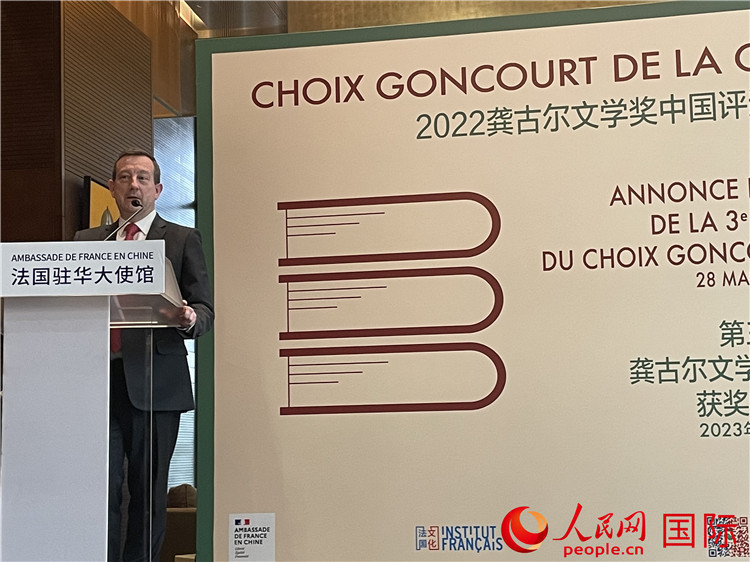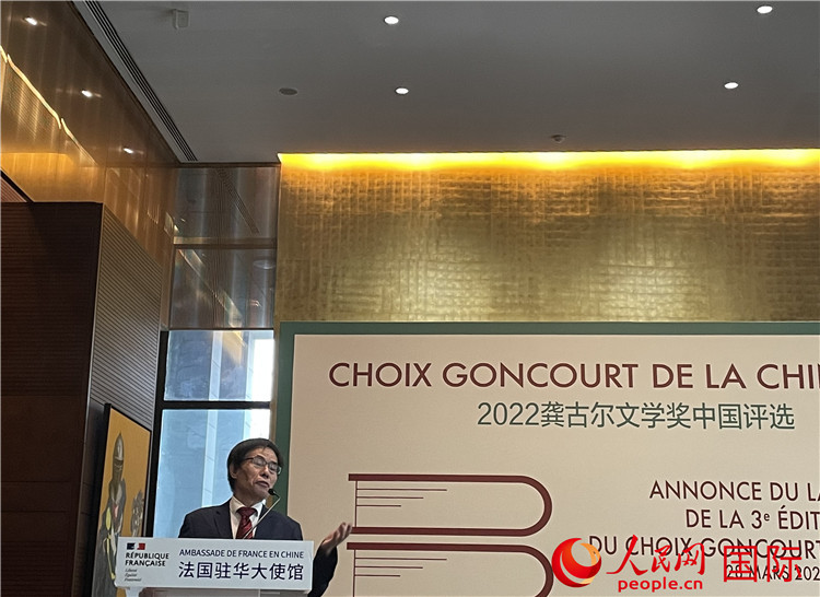 人民網(wǎng)北京3月29日電 (謝瑩、孫鴻宇)3月28日,第三屆“龔古爾文學(xué)獎(jiǎng)中國(guó)評(píng)選”新聞發(fā)布會(huì)在法國(guó)駐華大使館舉辦。法國(guó)駐華大使白玉堂出席并宣布獲獎(jiǎng)作家。龔古爾獎(jiǎng)中國(guó)評(píng)選顧問(wèn)杜青鋼教授以及兩位學(xué)生評(píng)委代表參與發(fā)布會(huì)并點(diǎn)評(píng)獲獎(jiǎng)作品。