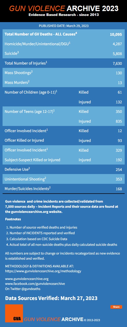 美國(guó)“槍支暴力檔案”網(wǎng)站數(shù)據(jù)顯示,截至3月27日,2023年美國(guó)已發(fā)生130起大規(guī)模槍擊事件。圖片來源:美國(guó)“槍支暴力檔案”網(wǎng)站官網(wǎng)截圖