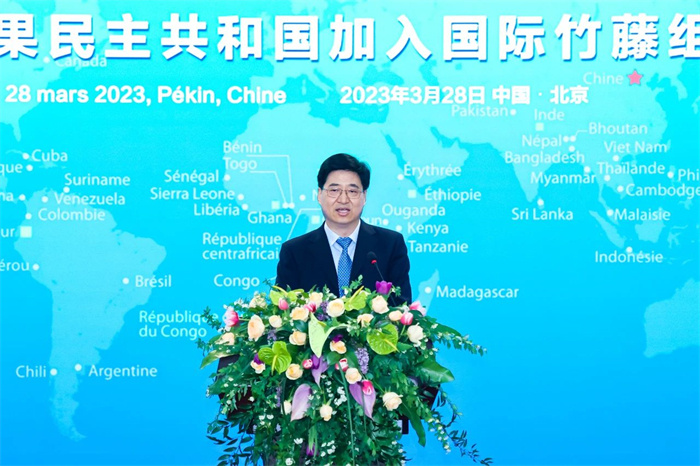 恩東戈·朱爾·多雷代表國際竹藤組織理事會歡迎乍得共和國和剛果民主共和國加入國際竹藤組織大家庭。他表示,國際竹藤組織是南南合作的重要平臺,其50個成員國絕大部分來自全球發(fā)展中地區(qū)。國際竹藤組織通過在世界各地開展示范項目,提高國際社會對竹藤資源價值和潛力的認(rèn)識。廣大成員國將繼續(xù)推動國際竹藤組織取得新的發(fā)展成就,為建設(shè)可持續(xù)的綠色未來發(fā)揮積極作用。