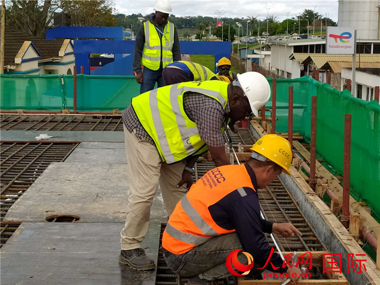 | 中外工人正在加緊施工作業(yè)。人民網(wǎng)記者 黃培昭攝 |