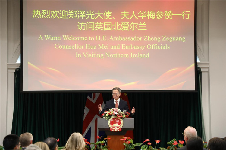 人民網(wǎng)貝爾法斯特3月30日電 (周卓斌、郭錦標)3月27日,中國駐英國大使鄭澤光在訪問北愛爾蘭期間出席貝爾法斯特總領館歡迎招待會并發(fā)表演講。