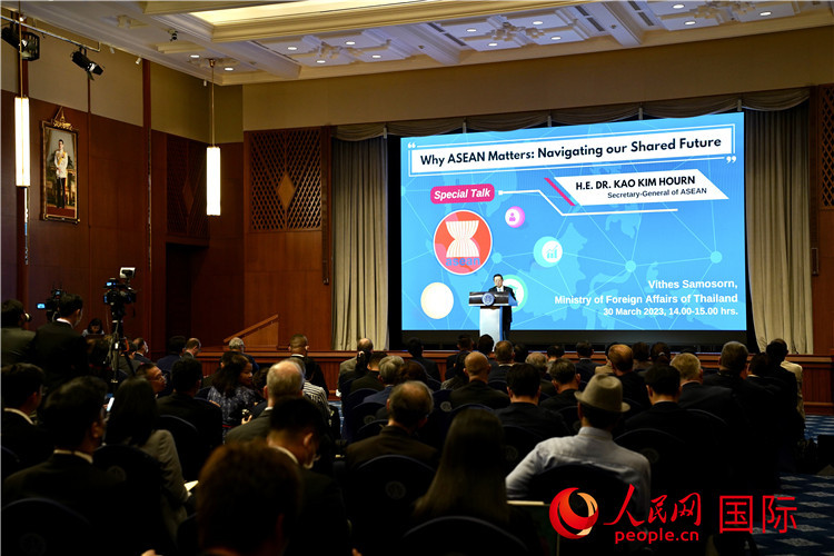 人民網(wǎng)曼谷3月30日電 (記者趙益普,實(shí)習(xí)生冷江濤、李源欣)當(dāng)?shù)貢r(shí)間3月30日下午,東盟秘書長高金洪于泰國曼谷發(fā)表題為《東盟為何重要:引領(lǐng)我們的共同未來》特別講話。該活動(dòng)于泰國外交部舉行,吸引了數(shù)百名各國官員、媒體參加。