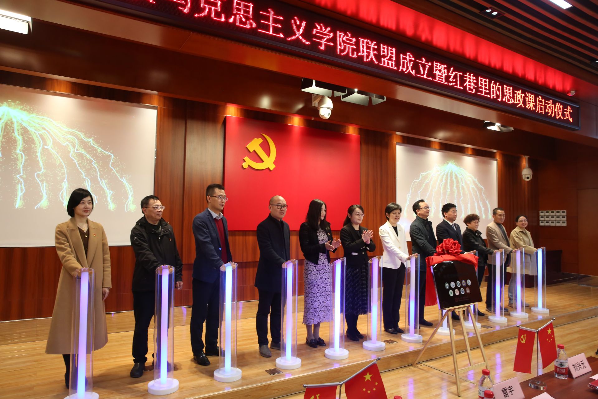 與會(huì)領(lǐng)導(dǎo)與馬院聯(lián)盟各成員單位為“實(shí)踐教育基地”進(jìn)行現(xiàn)場(chǎng)揭牌,共同啟動(dòng)“紅巷里的思政課”。