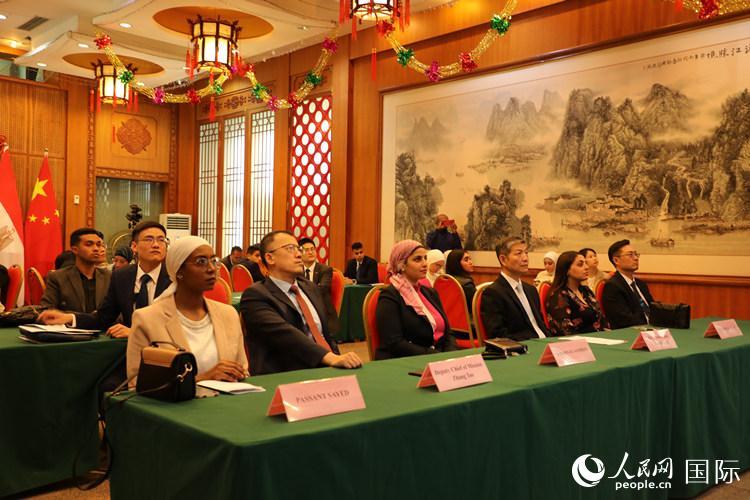 全體與會(huì)者共同觀看了阿文版《中國(guó)共產(chǎn)黨國(guó)際形象網(wǎng)宣片》。使館2名青年外交官代表結(jié)合自身工作經(jīng)歷,分別以《從三個(gè)關(guān)鍵詞讀懂中共二十大重要意義》和《從十年之變看中國(guó)式現(xiàn)代化》為題,深入淺出闡釋中共二十大的時(shí)代意義和深遠(yuǎn)影響,以及中國(guó)式現(xiàn)代化對(duì)發(fā)展中國(guó)家的重要啟示。開羅大學(xué)3名師生代表結(jié)合自身工作和學(xué)習(xí)經(jīng)歷,積極分享對(duì)中國(guó)式現(xiàn)代化的認(rèn)識(shí)和體會(huì),高度評(píng)價(jià)中國(guó)發(fā)展成就,贊賞中國(guó)通過(guò)“一帶一路”合作助力埃及發(fā)展,表示愿為推動(dòng)埃中關(guān)系進(jìn)一步發(fā)展貢獻(xiàn)青春力量。