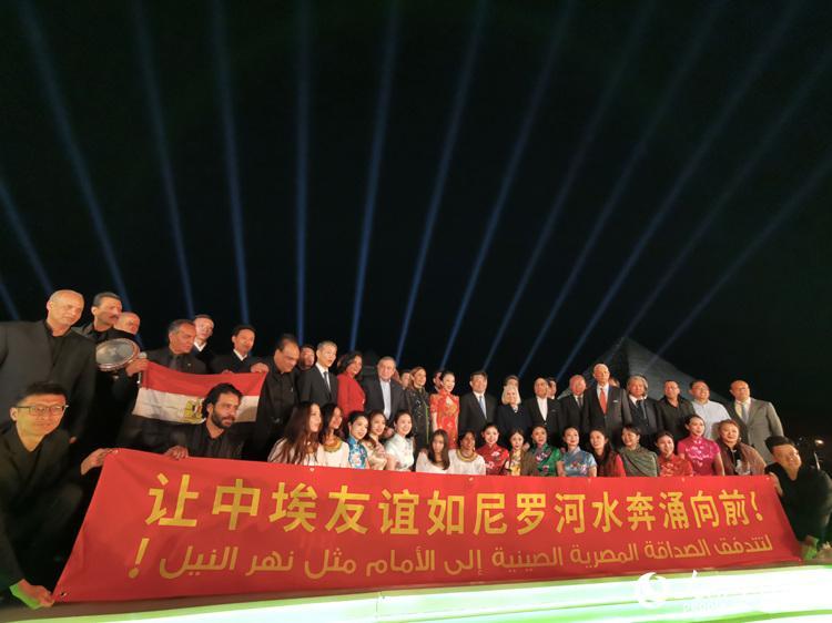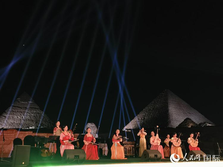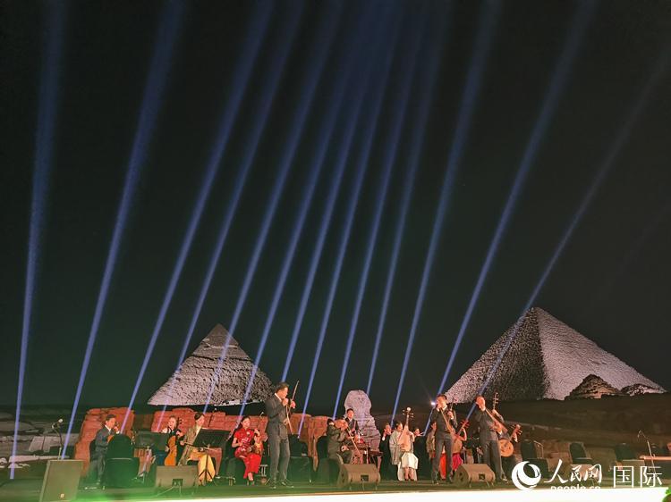 中埃兩國同為世界文明古國,人文領(lǐng)域合作空間大、潛力足。夜幕下的吉薩三大金字塔在燈光映襯下巍峨聳立,現(xiàn)場橫幅展示出“讓中埃友誼如尼羅河水奔涌向前”字樣,兩大古老文明此刻在金字塔上空相遇。音樂會的成功舉辦將成為中埃兩國文化合作新起點(diǎn)。