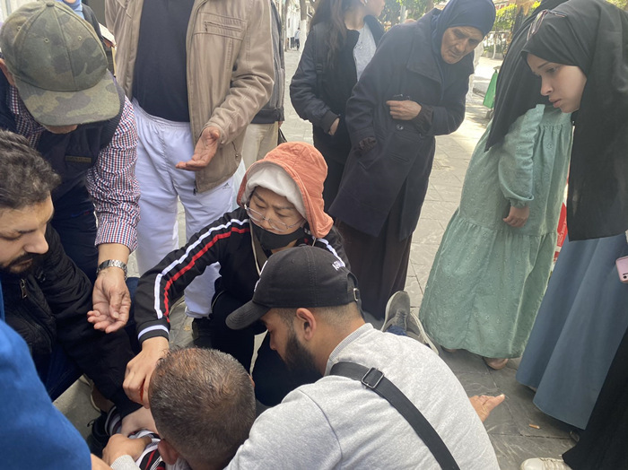 人民網(wǎng)阿爾及利亞4月5日電 (記者王傳寶)4月4日,2名中國(guó)援助阿爾及利亞醫(yī)療隊(duì)隊(duì)員在阿爾及利亞首都阿爾及爾街頭伸出援手,成功救治一名突發(fā)暈厥的病人,贏得當(dāng)?shù)孛癖姷暮迷u(píng)。