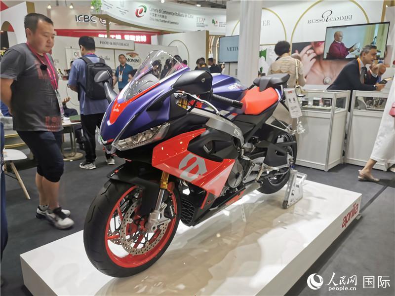| 意大利企業(yè)館展出的摩托車。人民網(wǎng)記者 符園園攝 |