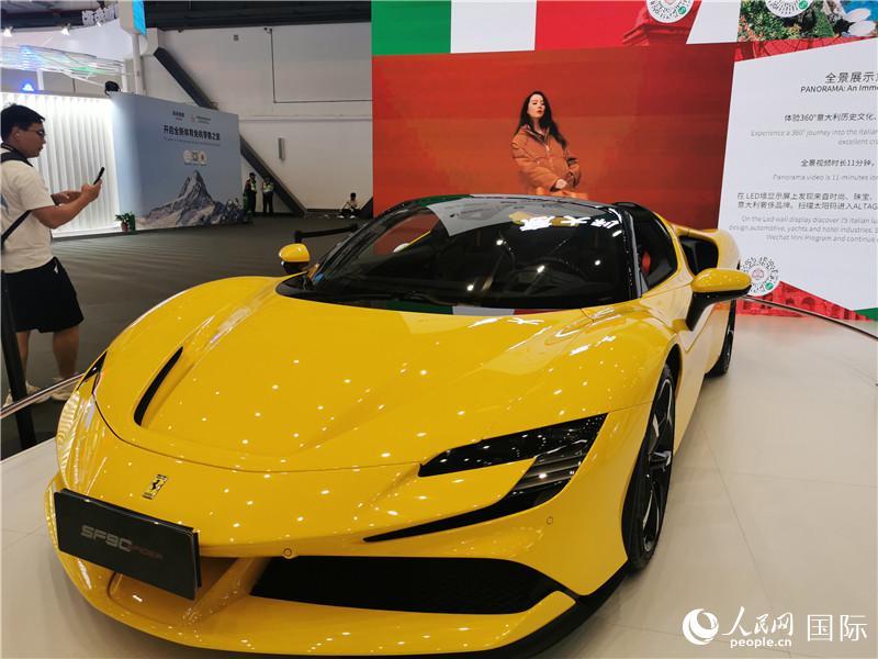 | 意大利國家館展出的跑車。人民網(wǎng)記者 符園園攝 |