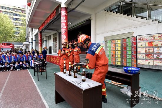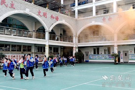 4月12日,黃石市黃石港區(qū)廣場(chǎng)路小學(xué)“突發(fā)火災(zāi)”,伴隨著急促的警報(bào)聲,全校2800余名師生以及2名行動(dòng)不便的學(xué)生,在老師和消防救援人員的組織引導(dǎo)下迅速疏散到安全地帶。