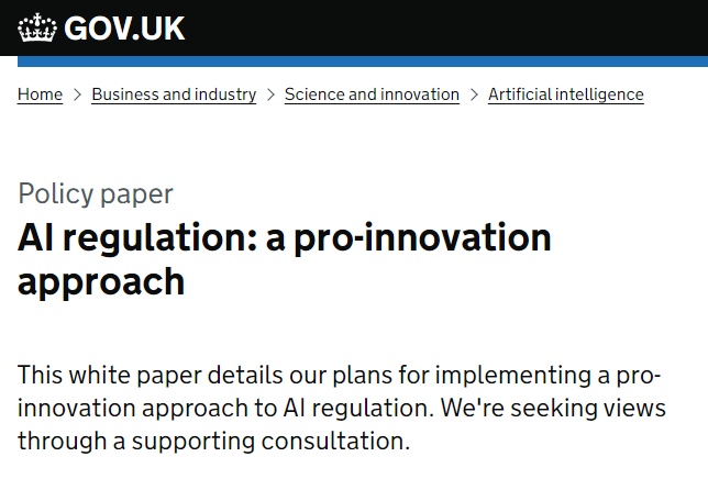 3月29日,英國(guó)政府發(fā)布《支持創(chuàng)新的人工智能監(jiān)管方式》。圖片來(lái)源:英國(guó)政府官網(wǎng)