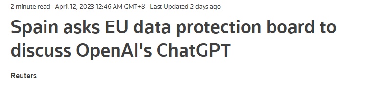 人民網(wǎng)訊 據(jù)路透社4月11日報道,西班牙的數(shù)據(jù)保護機構要求歐盟的隱私監(jiān)管機構評估OpenAI公司開發(fā)的聊天機器人ChatGPT存在的隱私問題。西班牙要求將ChatGPT的相關問題納入歐洲數(shù)據(jù)保護委員會下次全體會議的議程中,以便于在歐盟通用數(shù)據(jù)保護條例的框架下實施協(xié)調行動。(編譯:吳超嵐)