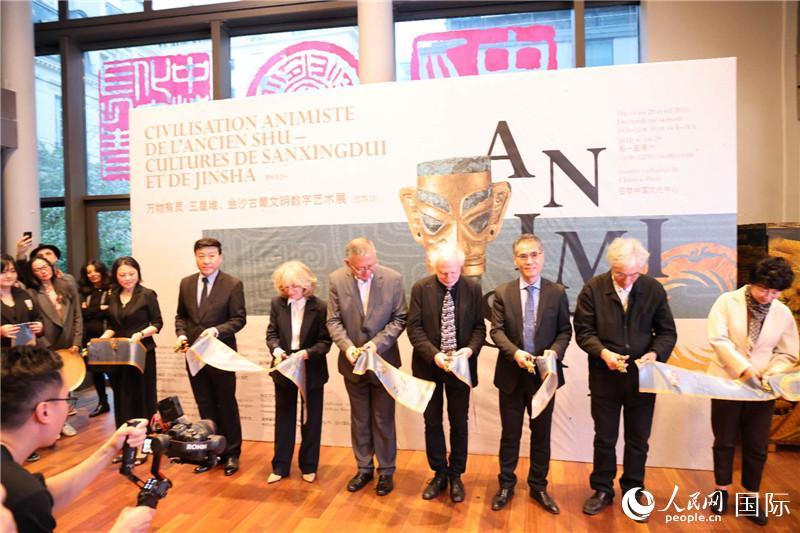 人民網(wǎng)巴黎4月14日電 (記者劉玲玲、尚凱元)4月13日,“萬物有靈·三星堆、金沙古蜀文明數(shù)字藝術(shù)展”開幕式在巴黎中國(guó)文化中心舉行。四川省委宣傳部副部長(zhǎng)、省網(wǎng)信辦主任房方,中國(guó)駐法國(guó)大使館公使銜文化參贊嚴(yán)振全,巴黎中國(guó)文化中心主任劉紅革,法國(guó)藝術(shù)家沙龍主席瑪?shù)倌取さ吕哲降劝儆嗝蟹钨e出席活動(dòng)。