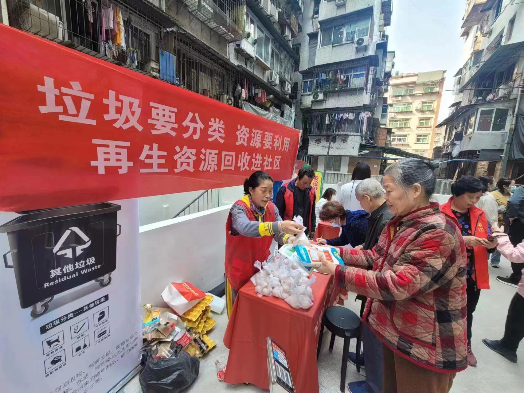 活動(dòng)上垃圾分類(lèi)志愿者指導(dǎo)居民按流程進(jìn)行可回收物兌換,細(xì)心地記錄每個(gè)居民兌換的可回收物數(shù)量及重量,向居民兌換相對(duì)應(yīng)數(shù)量的雞蛋和發(fā)放生活垃圾分類(lèi)宣傳冊(cè),邀請(qǐng)居民掃碼加入生活垃圾分類(lèi)打卡群,并向居民宣傳生活垃圾分類(lèi)知識(shí)和“戶(hù)內(nèi)分類(lèi)、群內(nèi)打卡、戶(hù)外投放”新模式。
