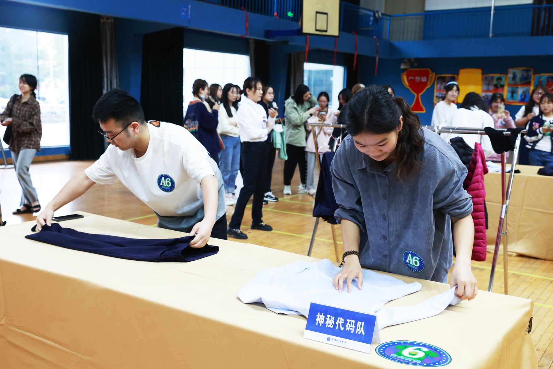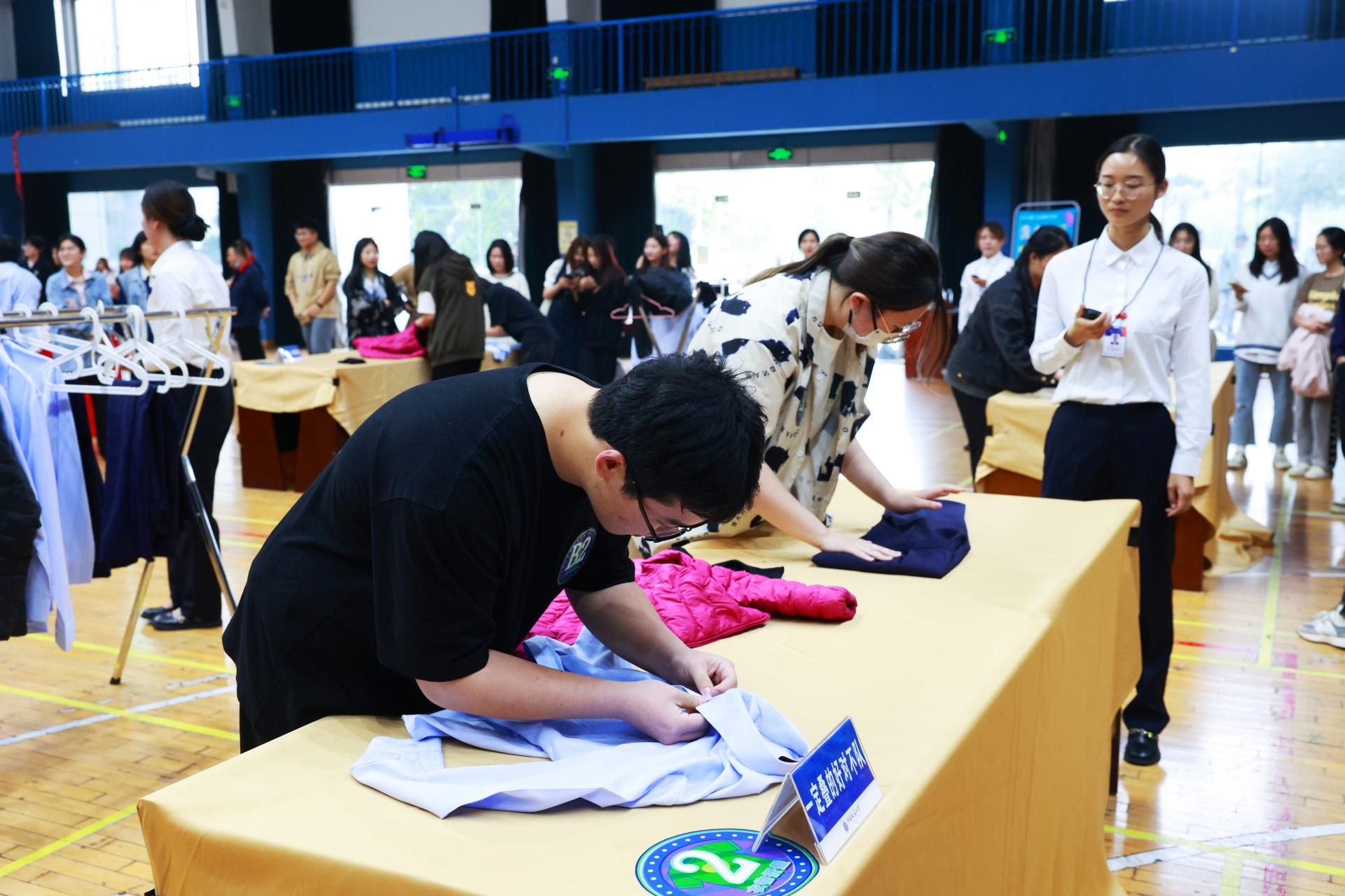 學(xué)習(xí)實踐環(huán)節(jié),同學(xué)們紛紛摩拳擦掌,上手學(xué)習(xí)鋪床單、套被子、疊羽絨服、疊襯衣等各類房間整理生活技巧。盡管屋外細(xì)雨綿綿,室內(nèi)卻熱火朝天。