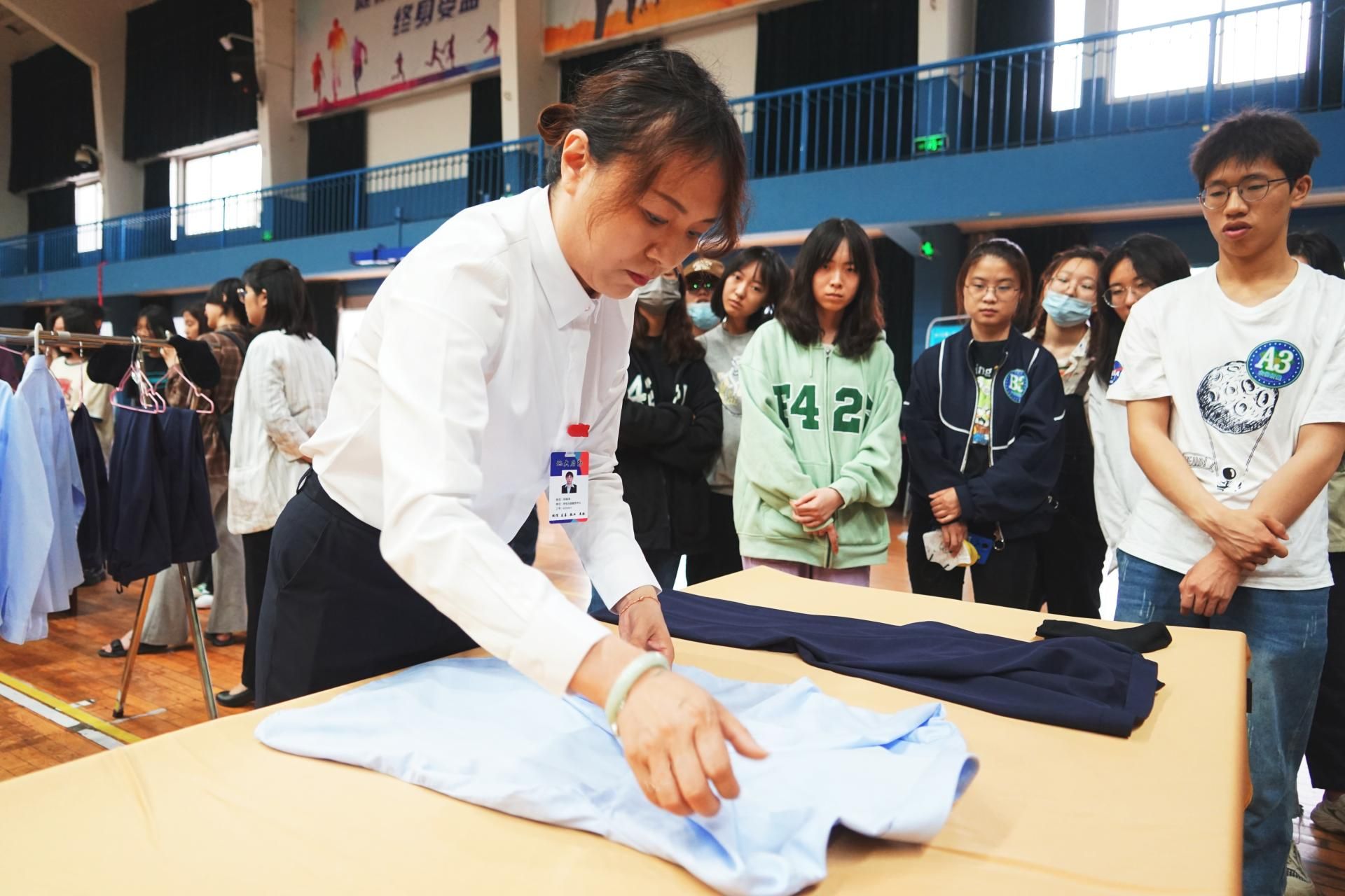 “哇,平時覺得好難的套被子這么容易就完成了”“整套動作也太快了吧,我都不敢眨眼睛,生怕錯過了一個環(huán)節(jié)”“襯衣居然能疊成方塊?!也沒有想象中那么難啊”……在觀看展示環(huán)節(jié),工作人員的專業(yè)度和熟練度讓同學(xué)們驚嘆不已,鼓掌聲不絕于耳。