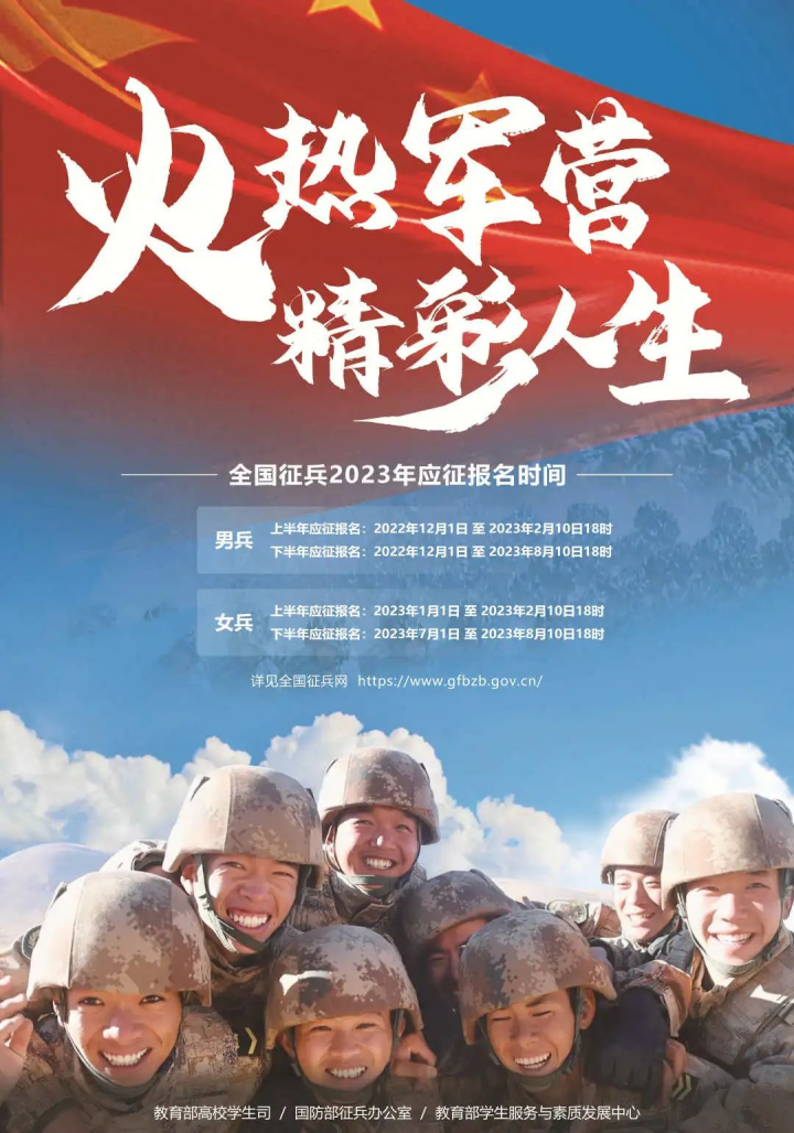 2023年下半年男兵應征報名已經(jīng)開始,報名時間截至2023年8月10日18時。有志青年們,青春由磨礪而出彩,人生因奮斗而升華,火熱軍營期待你們的加入!