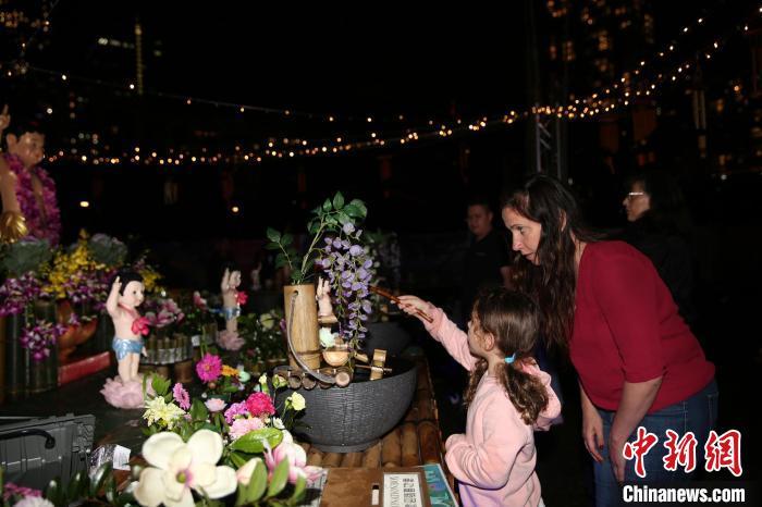當地時間4月22日,慶祝釋迦牟尼佛誕生暨贊頌星云大師音樂會活動在悉尼達令港Tumbalong公園舉行。來自澳大利亞各宗教代表以及社區(qū)信眾逾千人參加了當天的活動。圖為當地澳大利亞民眾參加“浴佛祈愿區(qū)”活動。中新社記者 顧時宏 攝