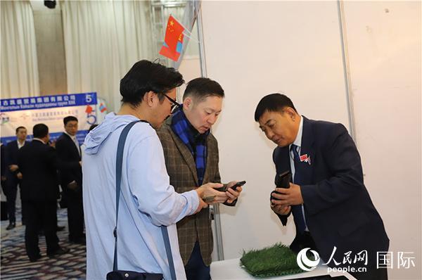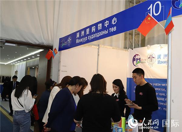 | 蒙古國烏蘭巴托·中國滿洲里企業(yè)推介會暨商品展示會現(xiàn)場。人民網(wǎng)記者 霍文攝 |