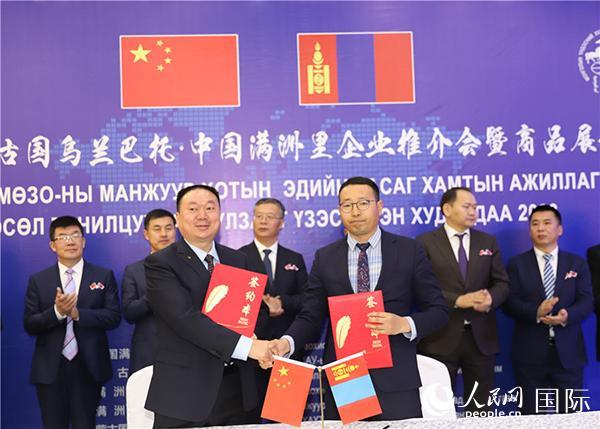 | 中蒙兩國企業(yè)簽署商務(wù)合作備忘錄。人民網(wǎng)記者 霍文攝 |