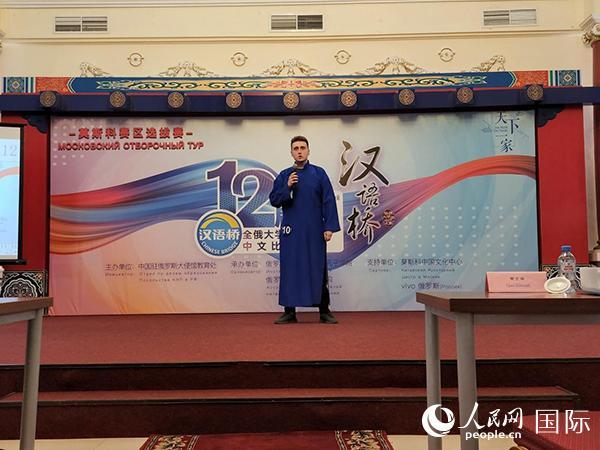 人民網(wǎng)莫斯科4月23日電 (記者榮翌)4月21日,第十二屆全俄“漢語橋”大學(xué)生中文比賽莫斯科賽區(qū)選拔賽在莫斯科中國文化中心舉辦。比賽由中國駐俄羅斯大使館教育處主辦,俄羅斯國立人文大學(xué)孔子學(xué)院和俄羅斯?jié)h語教師協(xié)會承辦。