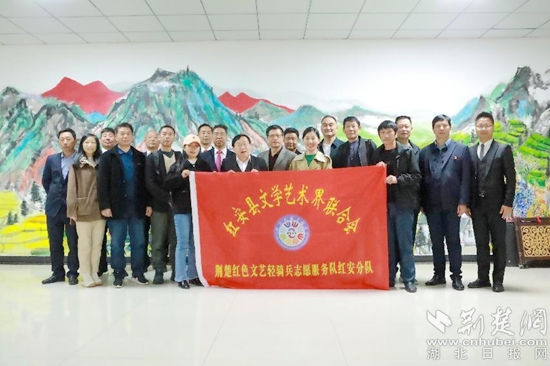 鄉(xiāng)村振興的這一示范點(diǎn)——普安橋村也吸引了文藝工作者的注意。紅安縣作協(xié)、攝協(xié)、書協(xié)、曲藝家協(xié)會(huì)一行30多人來(lái)到普安橋送《紅安文學(xué)》、送書法、為村民拍全家福、為群眾送文化大餐,前來(lái)的村民都拍手稱贊。