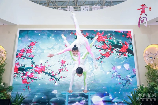 荊楚網(wǎng)(湖北日報網(wǎng))訊(通訊員 浠小文)4月22日,第二屆中國(武漢)文化旅游博覽會在湖北省武漢市開幕,浠水雜技節(jié)目《花仙蝶舞——轉碟》精彩亮相。