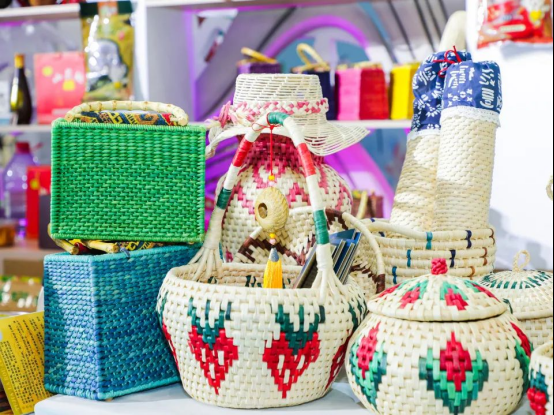 品一杯玉露茶、看一場文藝演出、賞山水美景、嘗特色美食、體驗(yàn)“草編技藝”。“恩施玉露”作為武漢東湖國事活動茶敘用茶之一,現(xiàn)場設(shè)置茶藝展示,恩施玉露茶免費(fèi)品嘗;香腸、排骨等土家臘肉滿口飄香;現(xiàn)場用玉米葉等編織的花瓶、包包、扇子、帽子等環(huán)保又美觀;西蘭卡普極具土家特色包包、“看家寶貝”硒片等特色產(chǎn)品吸引了眾多參展嘉賓駐足。