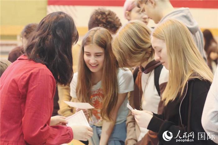 學(xué)生們現(xiàn)場(chǎng)學(xué)習(xí)中文問候語(yǔ)。人民網(wǎng)記者 禹麗敏攝
