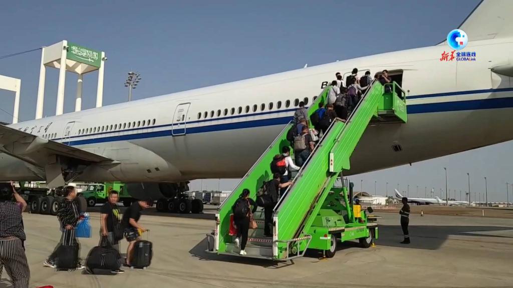 當(dāng)?shù)貢r(shí)間28日下午,中國從蘇丹撤離的部分人員從沙特西部的吉達(dá)國際機(jī)場(chǎng)乘坐中國國際航空CA090臨時(shí)航班啟程回國。