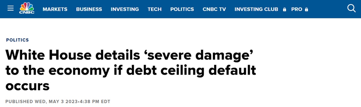 美國白宮周三發(fā)布了一份評估文件。其中說明了債務違約將帶來的后果。