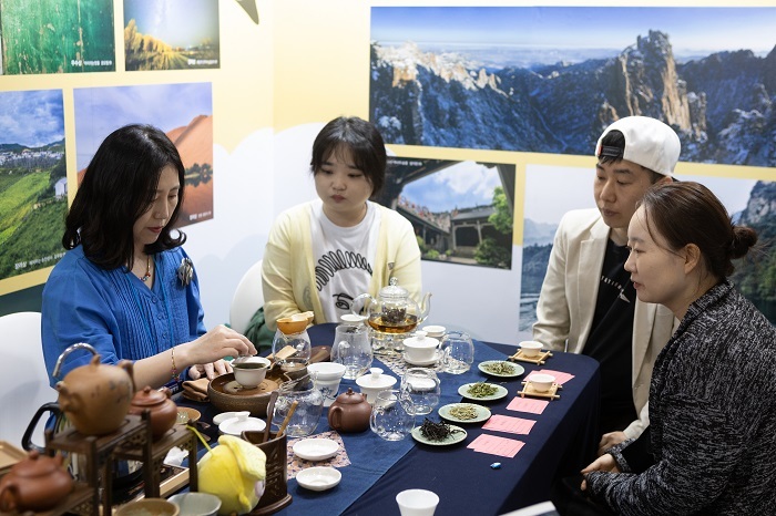 茶藝表演現(xiàn)場。中國駐首爾旅游辦事處供圖