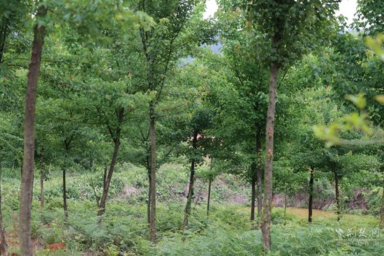 回頭看來時路,王智越深感不易?!爱敃r平整土地的時候就發(fā)現(xiàn)土壤含礫石多、質(zhì)地粗、保水保肥性差,種什么,怎么種是當時迫在眉睫的難題。”王智越說,通過請教湖北省農(nóng)科院的專家并結(jié)合網(wǎng)上專業(yè)人士的意見,他輾轉(zhuǎn)江西、浙江、黃岡、陽新等地進行實地考察,選擇樸樹、三角楓、紅梅等苗木造就一片經(jīng)濟林。