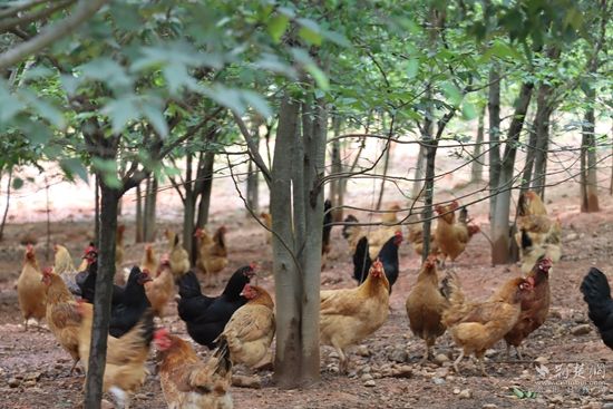 走在梓沐家庭農(nóng)場里,綠樹成蔭,微風習(xí)習(xí)?!斑@是茶梅路,那邊一條是桂花路,中間種的是三角楓,桂花路另一邊是樸樹以及一些果樹?!蓖踔窃竭呑哌吔榻B,農(nóng)場充分利用空間發(fā)展林下經(jīng)濟,單獨劃分區(qū)域,在樹下放養(yǎng)雞鴨共計1000余只。
