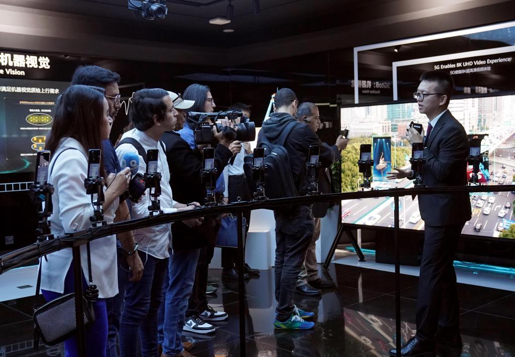 5月8日,洪都拉斯媒體代表團(tuán)在華為上海研究所參觀。新華社記者 劉穎 攝