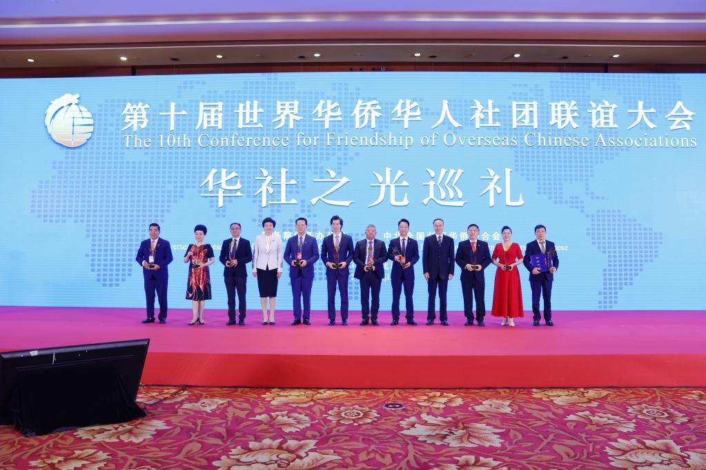 5月9日,第十屆世界華僑華人社團(tuán)聯(lián)誼大會舉行華社之光巡禮活動,10家海外僑團(tuán)被授予“華社之光”榮譽(yù)。