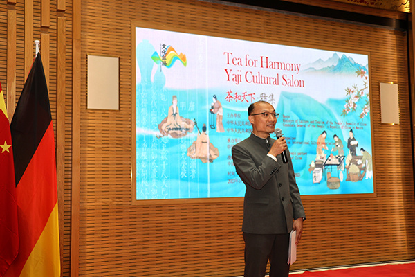 童德發(fā)致歡迎辭時(shí)說,值母親節(jié)來臨之際,向在場(chǎng)的各位母親致以誠(chéng)摯節(jié)日問候。在中國(guó)素有以茶奉母的做法,兒女們每逢佳節(jié)向母親敬茶以示孝敬,這與今天招待會(huì)的主題相得益彰。中國(guó)是茶的故鄉(xiāng),茶文化起源于中國(guó),飄香于世界,在歷史上一直是中國(guó)連通世界的文化紐帶,向全世界傳遞了“人與自然和諧共生”的中國(guó)文化內(nèi)涵??傤I(lǐng)館愿同來賓們共慶節(jié)日,共品茶香茶韻,全方位體驗(yàn)中國(guó)特色茶文化。期待中德兩國(guó)通過更多人文交流,增進(jìn)人民之間的相互了解和友誼。