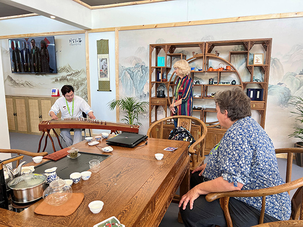 作為南非首個(gè)中國茶文化體驗(yàn)中心,中國傳統(tǒng)茶藝在這一極具特色的非洲旅游文化盛宴上精彩亮相,形成別具一格的文化碰撞。在這古香古色的茶室里,茶香彌漫,琴聲悠揚(yáng)。美輪美奐的茶具、行云流水的茶藝和典雅的古箏演奏共同構(gòu)成了一幅傳統(tǒng)文化之畫卷。參觀者們在近距離體驗(yàn)茶藝的同時(shí),還親身感受到了中國茶文化的獨(dú)特魅力與韻味。