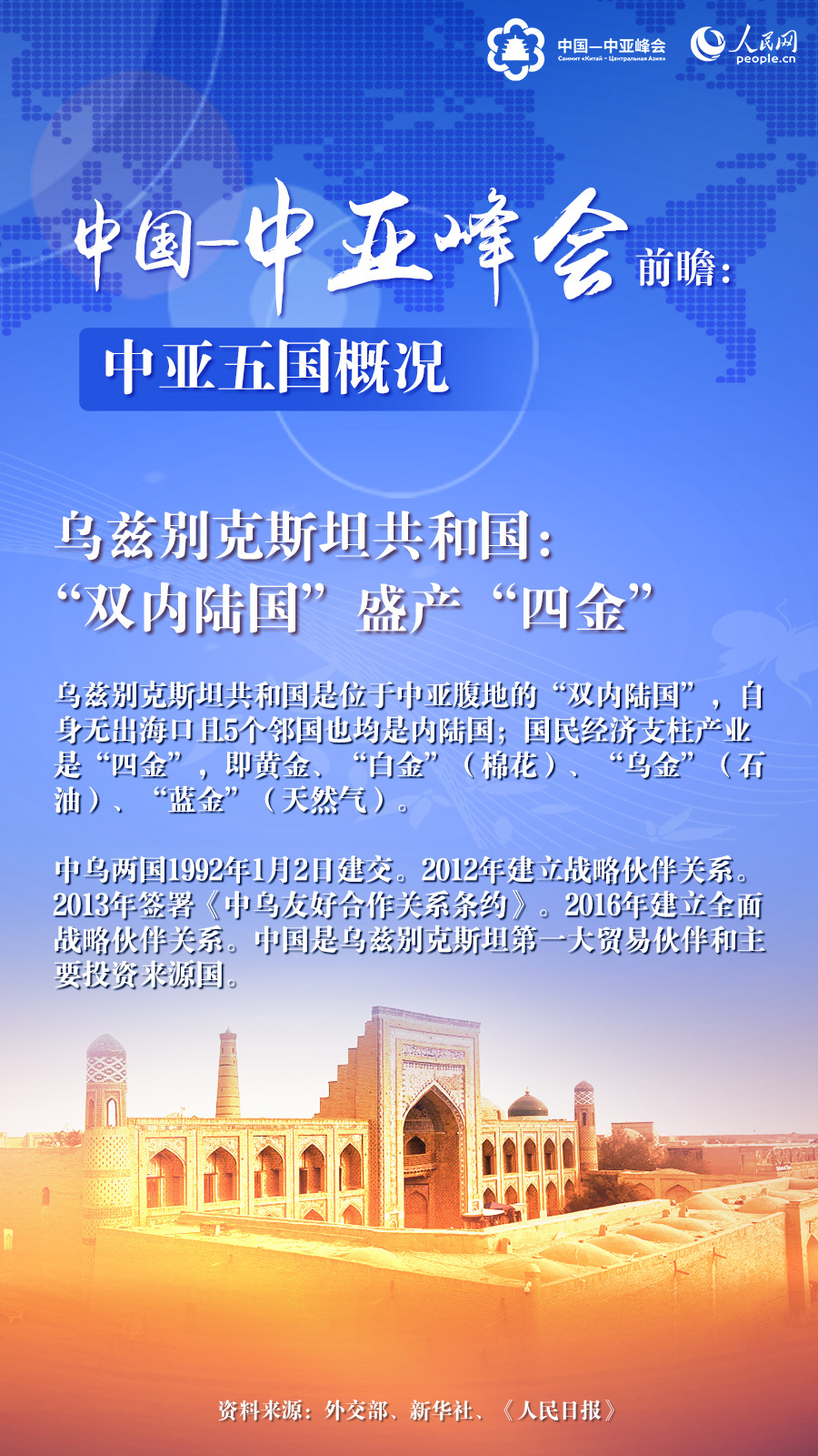 5月18日至19日,中國—中亞峰會將在中國陜西省西安市舉行。本次峰會是中國同中亞五國建交以來,六國元首首次以實體形式舉辦峰會,在中國同中亞國家關(guān)系發(fā)展史上具有里程碑意義,必將開啟中國同中亞國家關(guān)系發(fā)展的新篇章。峰會召開前,讓我們一同了解中亞五國概況。