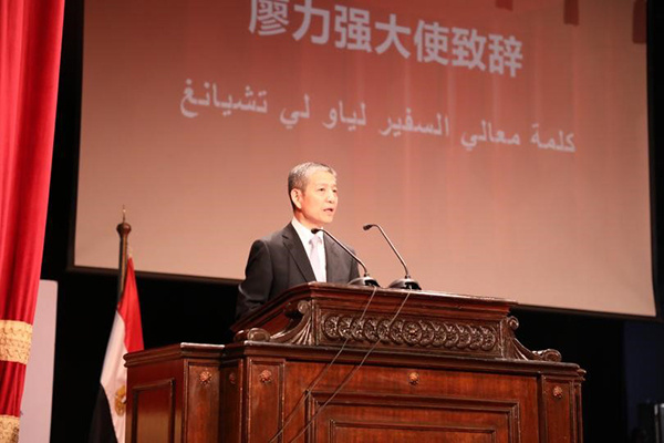 | 圖為中國(guó)駐埃及大使廖力強(qiáng)致辭。人民網(wǎng)記者 沈小曉攝 |
